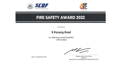 9 Penang Road gotten Fire Safety Award from National Fire and Emergency Preparedness Council (NFEC).